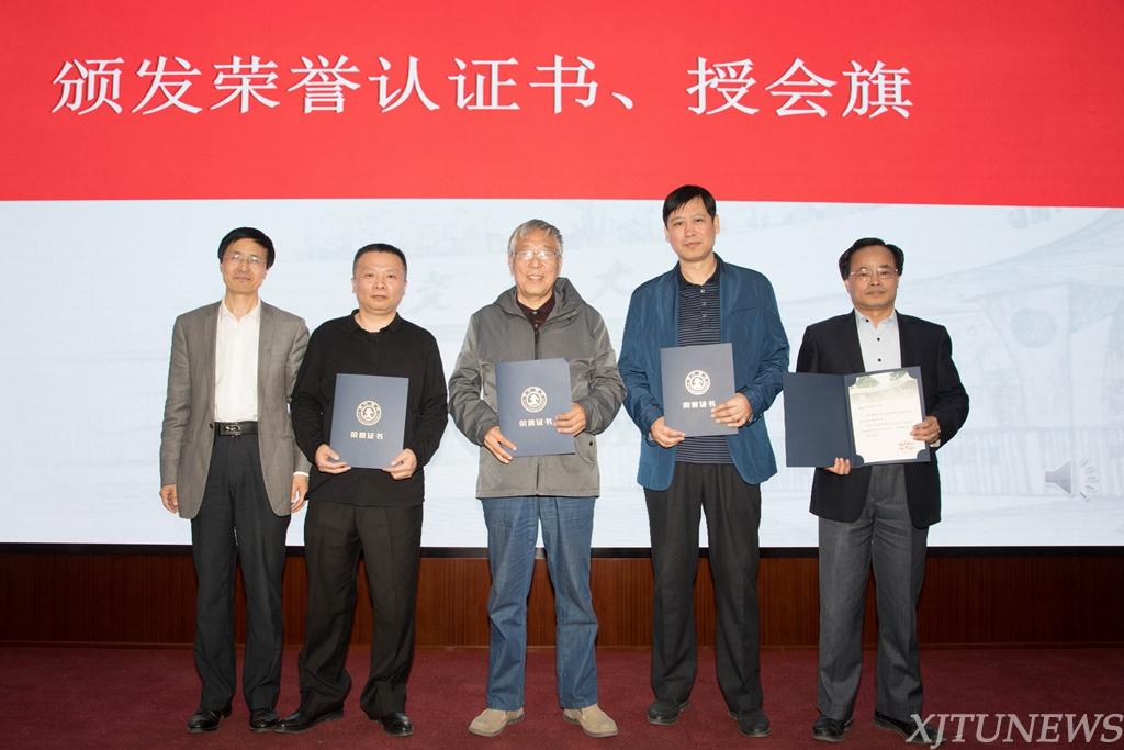 赵军武副书记向校友文学联合会授旗,向名誉会长、会长、副会长、秘书长颁发荣誉认证书并致辞。